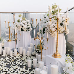 -Propose on the worlds most iconic rooftops overlooking the Burj Khalifa. -Fully private rooftop for your proposal so no one will be watching -Customised and high-quality proposal setup that will be placed on the private rooftop by a dedicated team of proposal designers which includes: -Plinths in your preffered proposal colour -Tall gold candleabras with long candles -5 real floral displays mixed with faux to add volume in your preffered colour scheme and flowers -Beautiful glass candle holders with candles -Rose petals sprinkled on the floor in your preffered colour. - Your preferred colour scheme for your setup - Romantic playlist played through a speaker - Private waiter - 3 hour rooftop - 3 course gourmet dinner - Bottle of sparkling bubbles - Proposal themes guidebook. For those who want something unique and different, we offer a guidebook of options to choose from for your proposal setup to take it to the next level. - Proposal tips handbook that is filled with all the useful details you will need to ensure everything runs smoothly for you. - A fully detailed proposal itinerary which includes everything you need to know including location, timings, how you propose, where you propose and how the entire proposal will run so you have nothing to worry about. Please ask about our add ons such as photography, videography, musicians, balloons etc at this venue. All extras can be booked through our website. 5-8pm Proposal time for spectacular sunset views