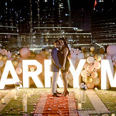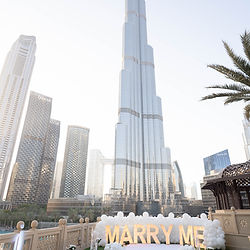 Watch the tallest building illuminate with their light show as you propose on a vast private rooftop terrace with an impressive view of Burj Khalifa in Dubai. Private rooftop that is only exclusive to Proposal Boutique clients with spectacular views Propose at your preferred time of day. Propose at sunset and watch the skyline transform into night and the Burj Khalifa twinkle. Customised and high-quality proposal setup that will be placed on the white sand beach by a dedicated team of proposal designers which includes: - High quality faux flowers in your preferred colour displayed beautifully around the setup - Clear or gold plinths to display romantic decoration - Beautiful tall glass candelabras with tall candles - Candles displayed in glass vases in the sand that will flicker against the night sky - Stunning table decor including tablecloth, crockery and candles that match your proposal theme. - Impressive long red carpet walkway to your proposal setup - Choose your custom proposal decoration from our vast collection - Your preferred colour scheme for your setup - Proposal themes guidebook. For those who want something unique and different, we offer a guidebook of options to choose from for your proposal setup to take it to the next level. - Proposal tips handbook that is filled with all the useful details you will need to ensure everything runs smoothly for you. - A fully detailed proposal itinerary which includes everything you need to know including location, timings, how you propose, where you propose and how the entire proposal will run so you have nothing to worry about. THIS VENUE IS DISCOUNTED FOR SEPTEMBER 2025 PROPOSALS BECAUSE DUBAI FOUNTAIN IN INOPERATIVE. HOWEVER THE VENUE STILL OFFERS AMAZING BURJ KHALIFA VIEWS